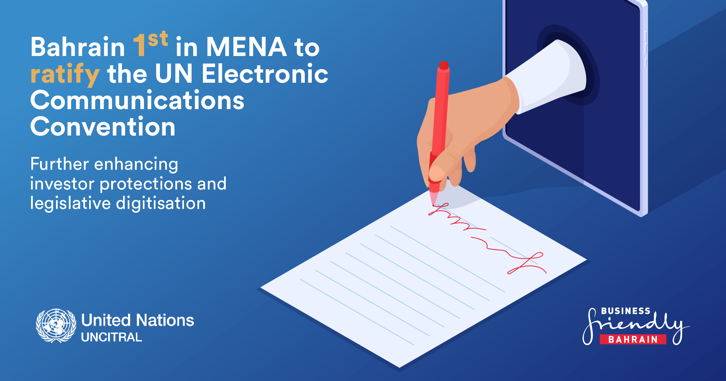 Manama, June 14 2020: Bahrain has become the first country in MENA to ratify a key United Nations convention on electronic communications, helping to enable a new wave of digital business across the region and enhance investor protections.