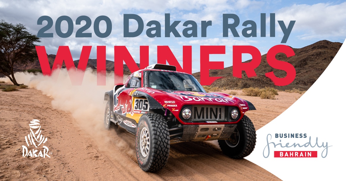 RIYADH, January 17th, 2020 – The Bahrain X-raid team has claimed victory at the Middle East’s first Dakar Rally. The route of Dakar 2020, hosted by Saudi Arabia, traveled through vast expanses of the largest country in the Middle East. 550 drivers from 62 nations faced a total of 7,500 km, with the Bahrain X-raid team driver Carlos Sainz and co-driver Lucas Cruz completing the 12 stages in forty two hours and fifty nine seconds.The Bahrain-sponsored winning team also included champion driver Stephane Peterhansel and co-driver Paulo Fiúza who finished the rally in third position respectfully.